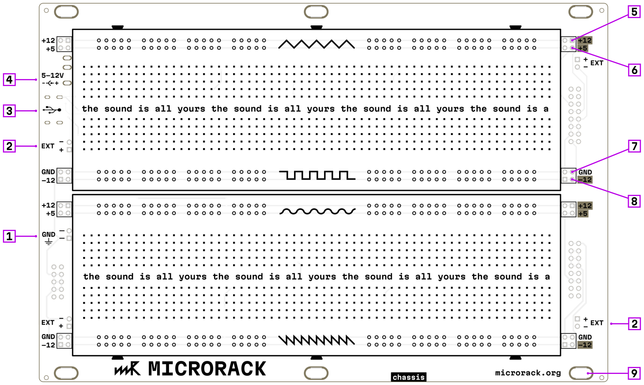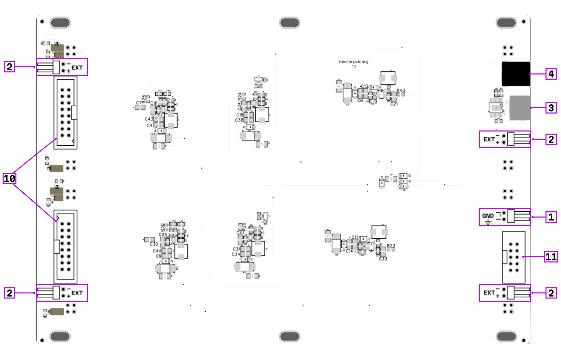 - Eurorack mounting holes